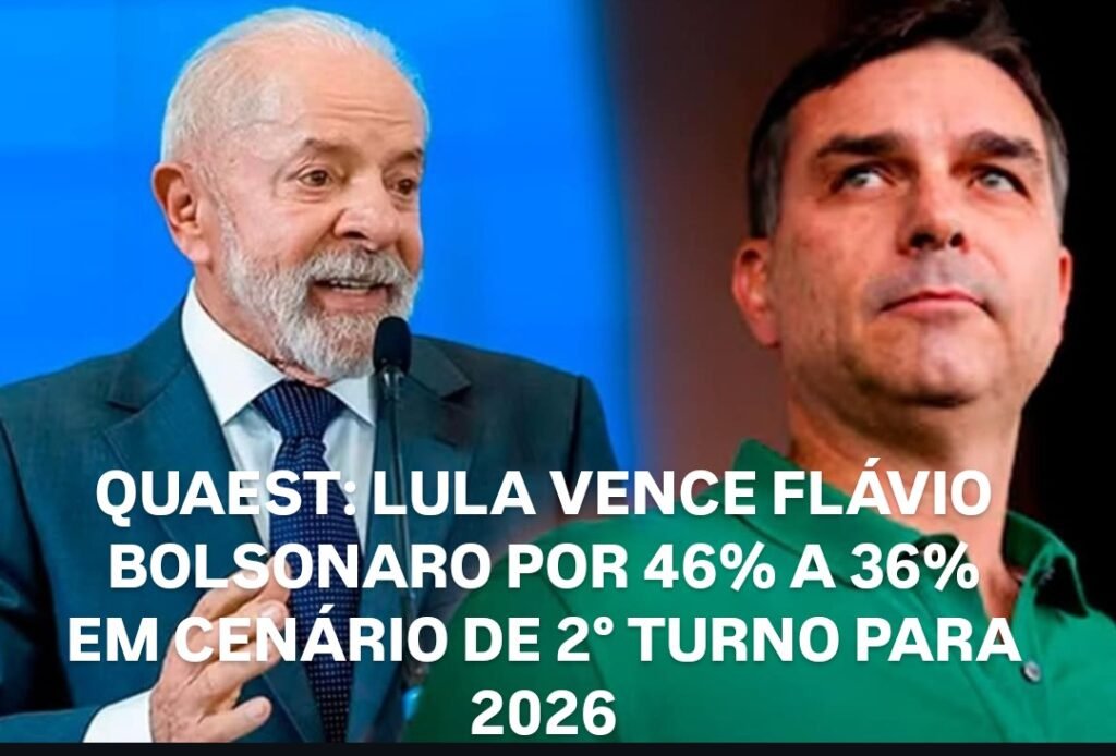 Home / Últimas Notícias / QUAEST: LULA VENCE FLÁVIO BOLSONARO POR 46% A 36% EM CENÁRIO DE 2° TURNO PARA 2026